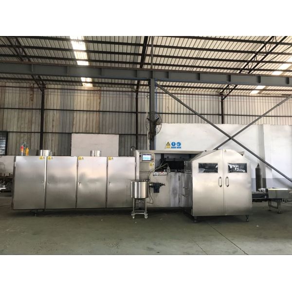Industrial cone making ice cream machine used for rolling sugar cones. It offer cones to the next process to be filled with ice cream. First it dispenses batter on the baking plates to prepare the wafer for shaping, then rolls then up, keep them in shape unload them finally. It is the main device of the production line. Excellent performances have allowed International Standards to be comfortably met. Advantages are less space requirement and less cost investment.